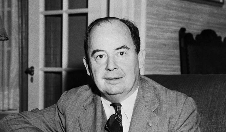 For von Neumann, the world of 1955 was in a state of “rapidly maturing crisis”—new military technology making old modes of defense obsolete, the world already a degree warmer thanks to burning fossil fuels (back then it wasn’t controversial to bring this up), and our demands as a species running up against the finite size of the earth. The section titles include “Dangers—Present and Coming” and “Awful and More Awful.” Von Neumann summed it up: “In the years between now and 1980 the crisis will probably develop far beyond all earlier patterns. When or how it will end—or to what state of affairs it will yield—nobody can say.“
