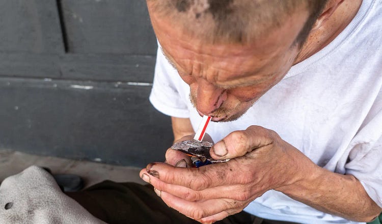 On the blue subway line to Chicago’s O’Hare Airport, there were two men in my car smoking joints. Sitting in a nest of filthy bags, there was a woman whose eyes were dilated and blank. There was also a man barking into the void, shirtless, washing himself with a flour tortilla, which would disintegrate, littering the subway floor, before he took out another and began the same process. This didn’t shock me, or anyone else around me, since I’d seen some variation of this dystopian scene on every Chicago metro line I’d ever ridden, every pedestrian walkway I’d passed through—and almost every community I’ve been to in the United States, save for those gated by wealth.
