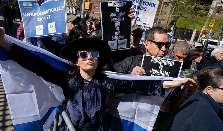 People attend a pro-Israeli rally held by assistant professor Shai Davidai at Columbia University on April 22, 2024, in New York City. (Photo by David Dee Delgado/Getty Images)