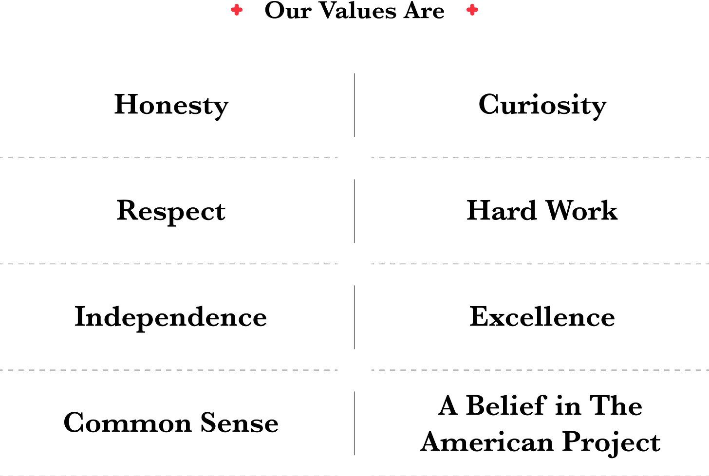 Experience can be gained over time, and skills can be taught, but values are non-negotiable. They guide our coverage, our behavior, and our expectations of ourselves and colleagues.