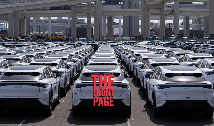 Imported BYD vehicles are parked at a port on March 27, 2025, in Yokohama, Japan. (Tomohiro Ohsumi via Getty Images)