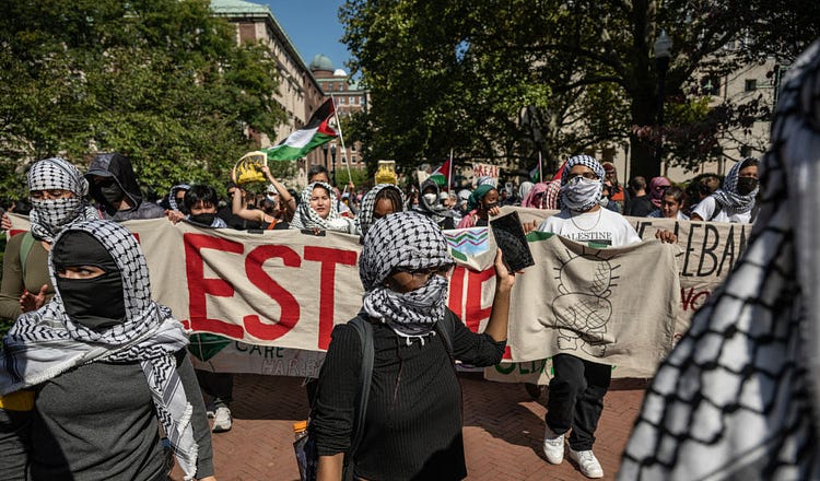 Students protest against the war in Gaza on the anniversary of the Hamas attack on Israel at Columbia University in New York City, October 7, 2024. (Victor J. Blue via Getty Images)