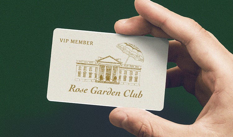 This weekend, Trump unveiled the newly renovated Rose Garden, and announced that it would be the setting of the Rose Garden Club—billed as the “hottest” place to be in the nation’s capital.