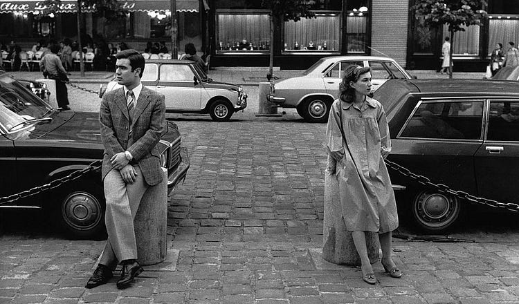 Two Parisians look in opposite directions in Saint-Germain-des-Prés in Paris, France. (Peter Turnley/Corbis/VCG via Getty Images)