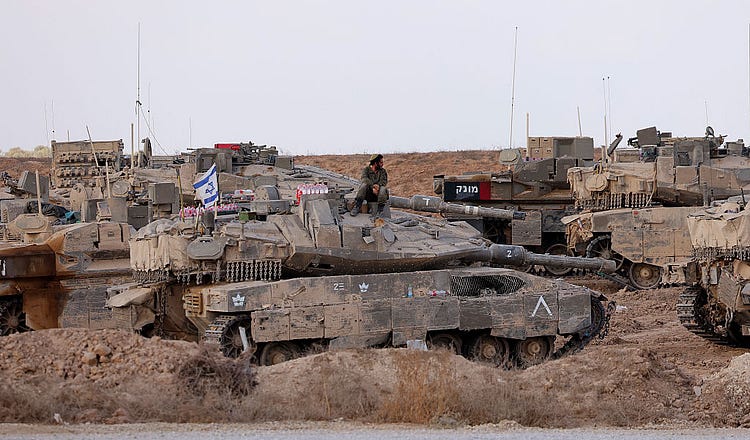 Israeli military vehicles deploy at the border between Israel and the Gaza Strip on September 19, 2025. (Jack Guez/AFP via Getty Images)