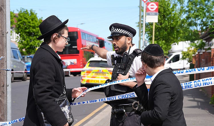 This morning, a man holding a knife ran down the street of a Jewish part of north London, hunting for Jews. He stabbed two of them. The suspect was tased after he tried to stab the officers who stopped him. Police have declared it a terrorist incident. The two victims, thankfully, are in stable condition.