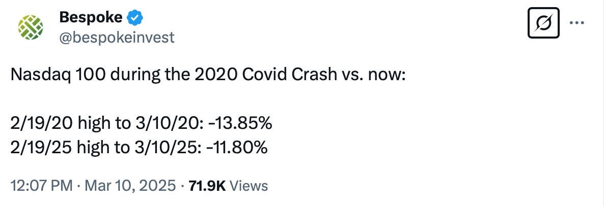 Yesterday, the stock market fell due to uncertainty over the application of tariffs and the president’s noncommittal response to a Fox News reporter’s question, “Are you expecting a recession this year?” It will undoubtedly recover. But the decline from mid-February to now mirrors the decline the nation experienced with 15 days to slow the spread that never ended.