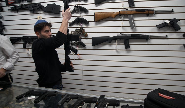 This week, we’re bringing you a story about Jews doing just that. Over the last few months, my colleague, video journalist Tanya Lukyanova, has been delving into the burgeoning network of Jews in New York City who are responding to the rise in antisemitic hate crimes by taking up arms. First, she visited a Brooklyn gun store that opened less than two years ago—the first in the borough in nearly four decades. There, she spoke with owner Michael Bergida, who estimates that roughly 60 percent of his new clients are Jewish first-time gun owners.