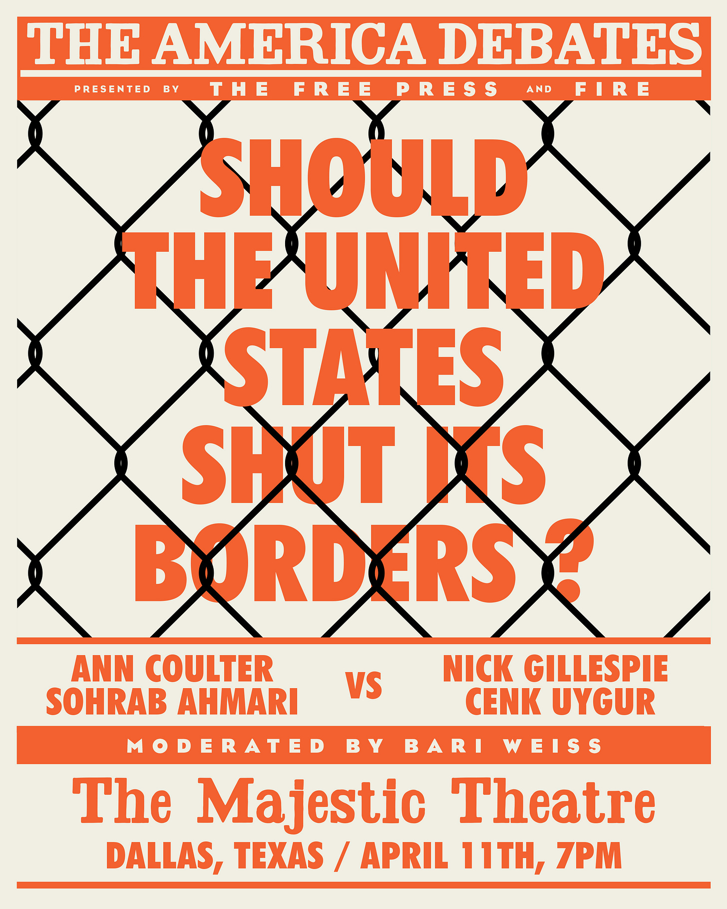 The first debate—Should America Close Its Borders?—will take place April 11 at the Majestic Theatre in Dallas, Texas.