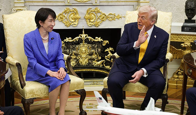 Prime Minister of Japan Sanae Takaichi meets with President Trump during a bilateral meeting in the Oval Office on March 19, 2026, in Washington, D.C. (Alex Wong via Getty Images)