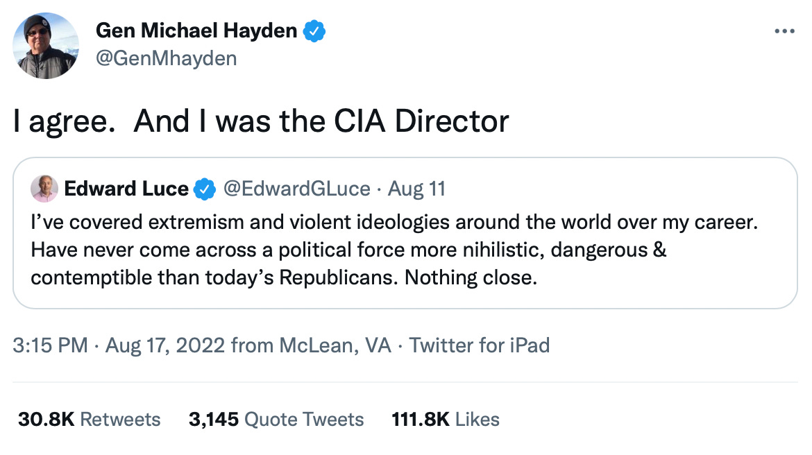 → This is not how the CIA regains America’s trust: If you are of a politically conservative persuasion, you might think: The CIA is out to get Trump and all Republicans! The trouble with calling that particular notion a conspiracy theory is when the former director of the CIA calls you and all Republicans the most nihilistic, dangerous, violent, and contemptible political ideology in the world. Yes, more dangerous than ISIS and Al Qaeda.
