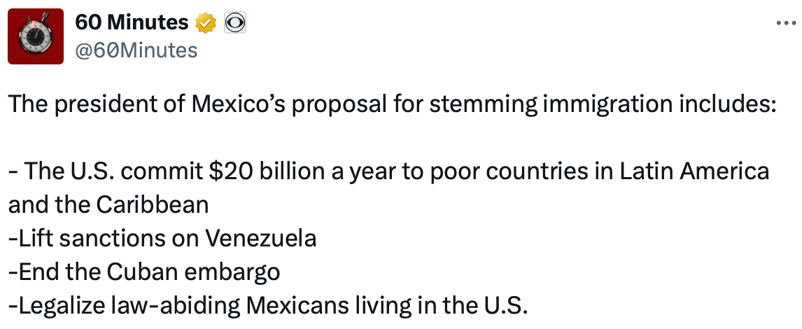 → Mexico enjoying the upper hand: With docile, slightly senile Biden in office and his extremely sharp Open Borders Now staff running the border with ruthless efficiency (i.e., always open, 24/7, jobs lined up at the factories that fired all their subversive, Trump-curious American workers), Mexico realizes that it’s in a rare and very special position: that of the upper hand. Mexico can finally start to dream a little dream, one in which American taxpayers not only take anyone in Mexico who wants to move north but also pay a lot of cash to the area around Mexico and also embrace all the corrupt communist regimes nearby.