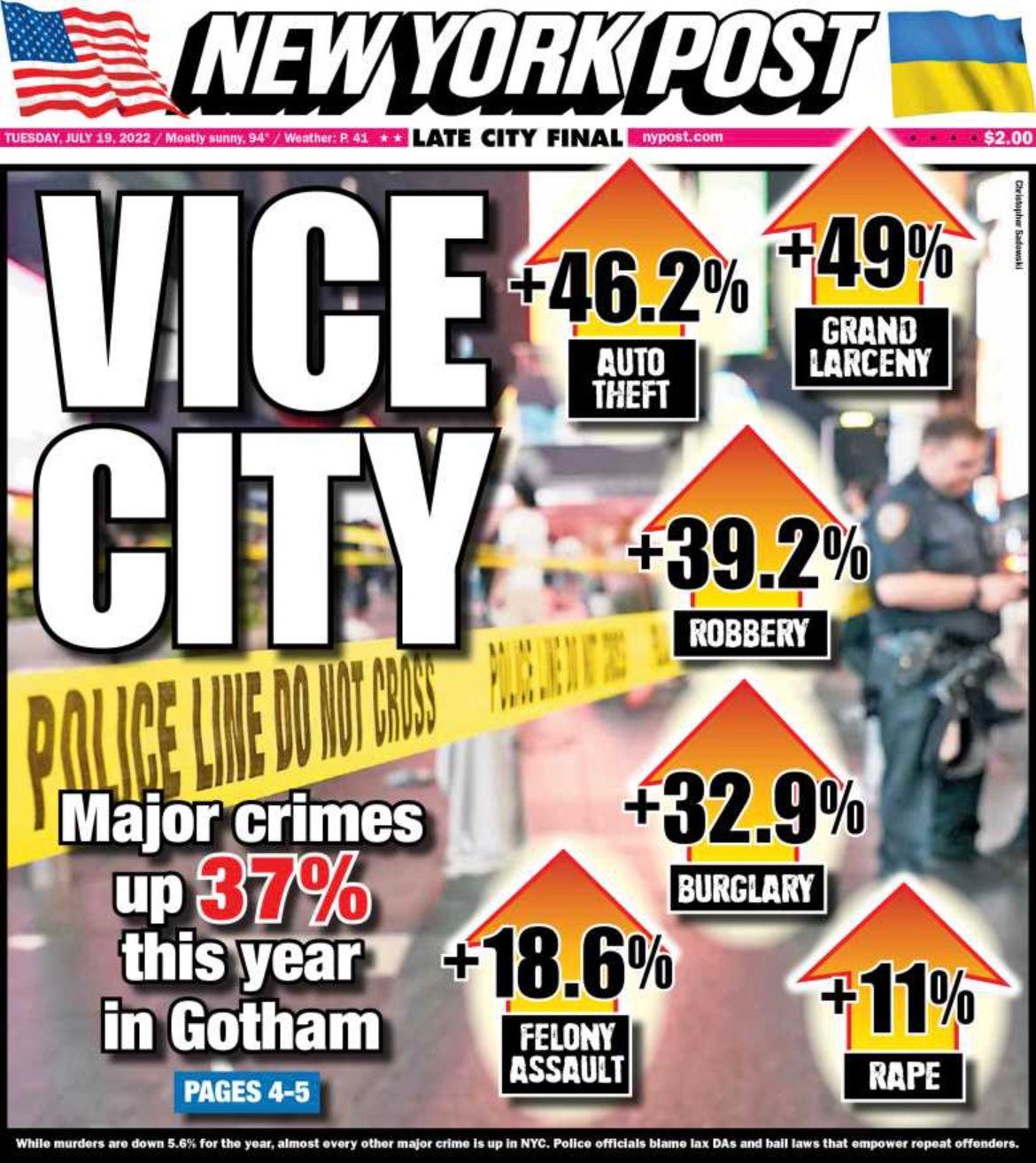 → Speaking of crime: The bodega worker is freed. After public outcry led by New York City’s great tabloids, the bodega worker who defended himself against an attacker was freed from Rikers, and his murder charge rightly dropped. Manhattan’s ultra progressive district attorney, Alvin Bragg, who initially set bail for the bodega worker at $500,000, has been chastened by the public and the mayor. Good. The city’s last mayor would probably have been leading a BLM protest outside the bodega, posting a lot of 👏 self-defense 👏 is 👏 not 👏 ok 👏.