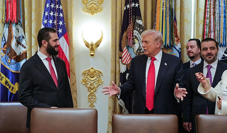 Jolani’s visit marked a rare visit to the White House by a Syrian leader (the first since 1946). Until recently, he was labeled a global terrorist with a $10 million bounty on his head (the U.S. bounty is still posted!). He’d spent years detained at U.S. military facilities after being captured by American forces in Iraq.
