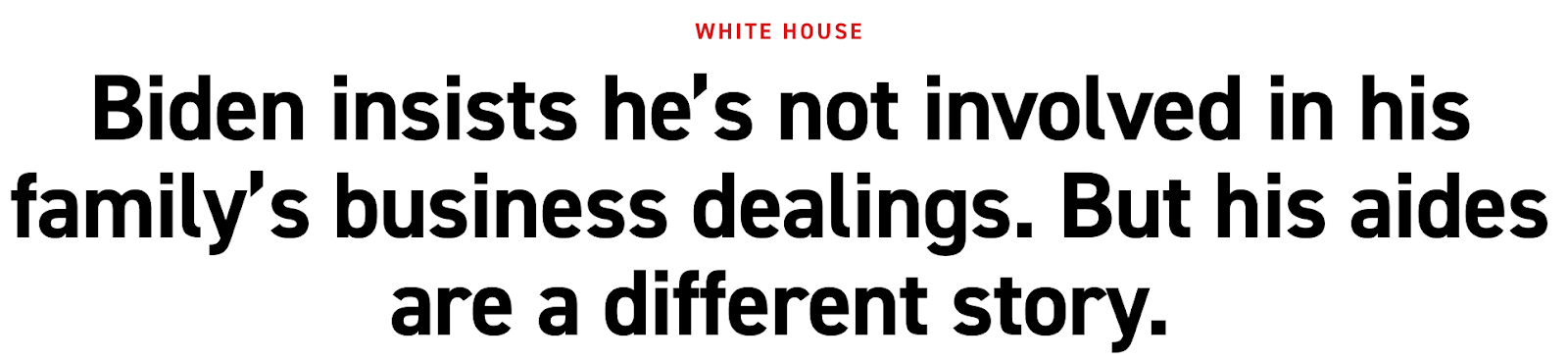 Anyway, Biden is clean! Sure, all his family members are constantly saying he’s helping them do shady deals with foreign interests, but that’s not Squeaky Joe. See, according to Politico this week, it’s his staff who handle most of it. When I want to propose a bribe-for-TGIF-item scheme, I have Just the Facts Coby handle that, so, I’m not involved at all: