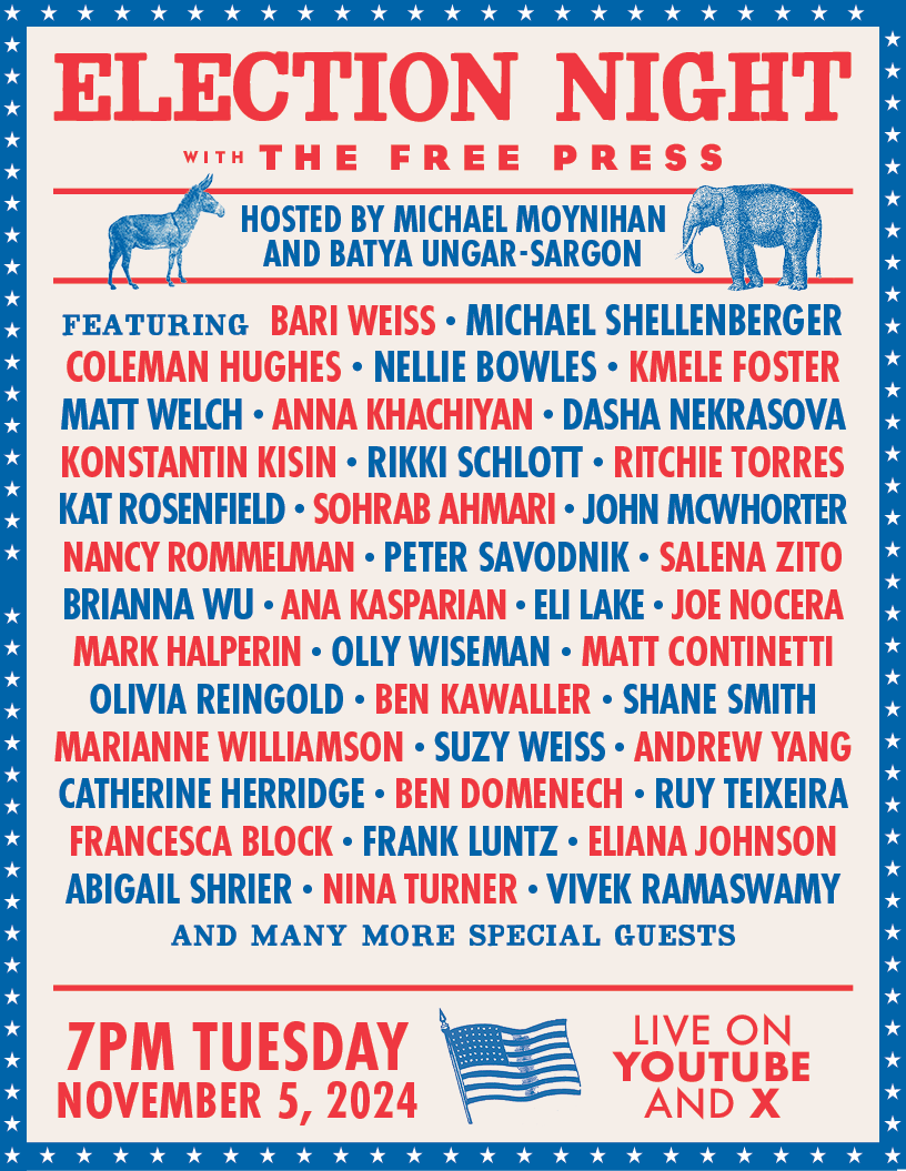 However crazy things get, join me and the rest of The Free Press crew on Tuesday for our election night special live show. Click “notify me” at this link to make sure you don’t miss it.