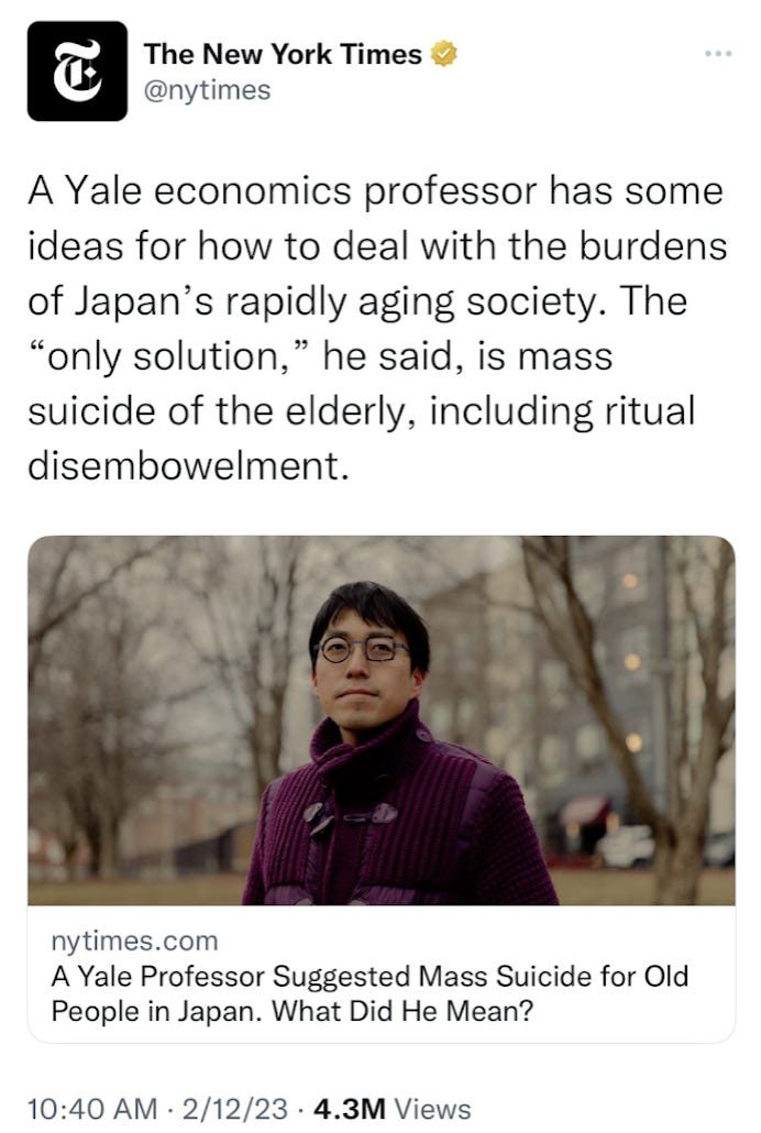→ Do not cure blindness, you monster: Popular YouTuber MrBeast decided to get some content out of helping people. He paid for cataract surgery for a thousand blind or nearly blind people, and he recorded (with their permission) the joyful moment their vision cleared. Now, I think it’s gauche—charity should be done quietly. But I did not think curing blindness itself is controversial. And yet, in fact it is. Have you ever considered that people might want to stay blinded by cataracts? That assuming someone wants to see is ableist?