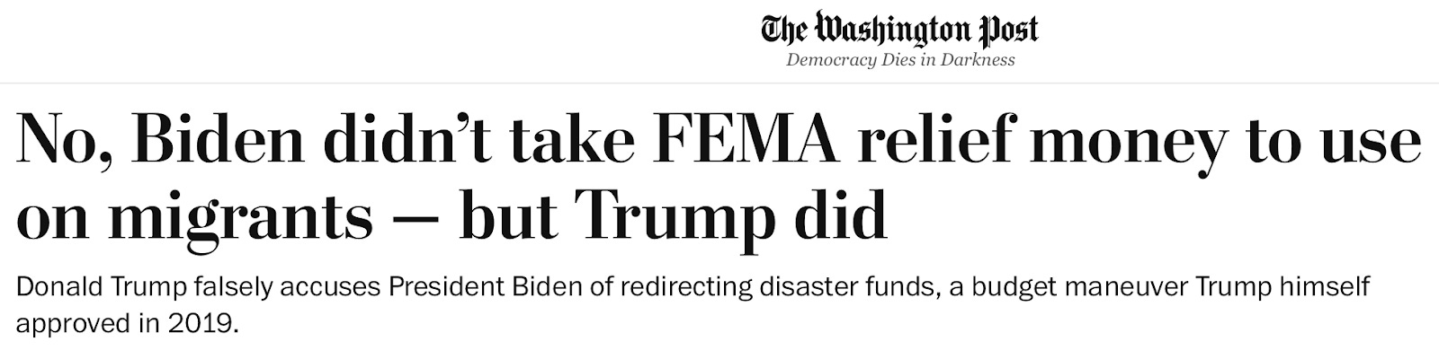 And now here is ABC saying it’s “false” to claim Biden used FEMA funds on migrant services, a “baseless claim.”