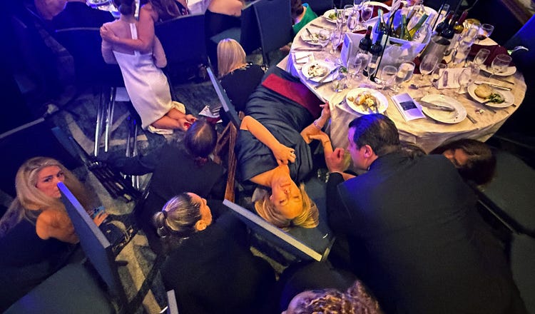 Among the guests on Saturday were members of a club that has grown too large: Steve Scalise, shot during a congressional baseball practice in 2017; Robert F. Kennedy Jr., whose father and uncle were assassinated; and Erika Kirk, whose husband, Charlie, was murdered last year. A video shows Kirk, in tears, being ushered out of the event. It struck us that we were gathered in the same hotel where, in 1981, John Hinckley Jr. attempted to assassinate then-president Ronald Reagan.