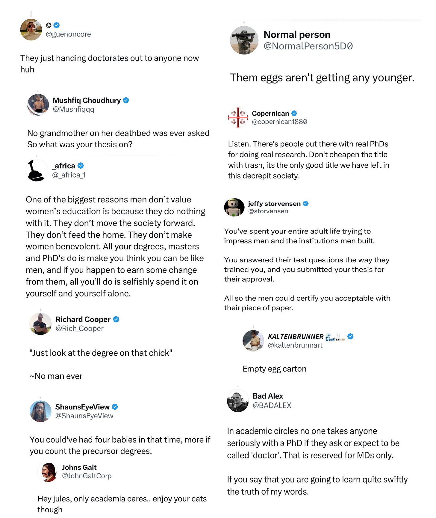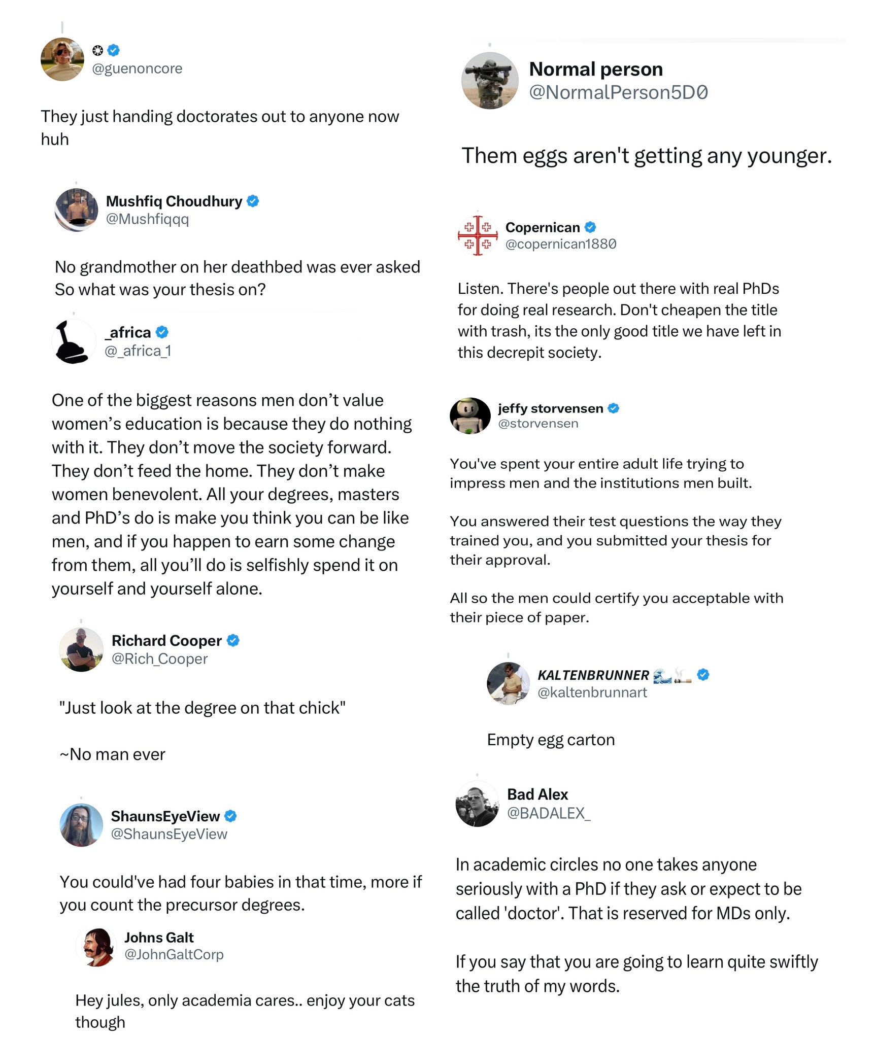 “ ‘Just look at the degree on that chick’ —no man ever,” said a manosphere influencer with more than 225,000 followers.
