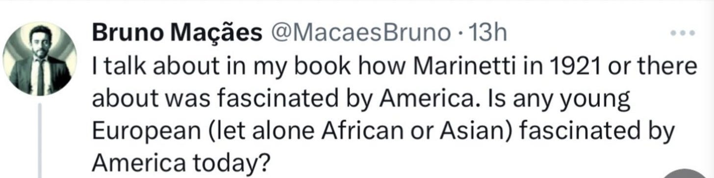 Mr Maçães has a lot of tweets in this genre, such as this equally absurd one: