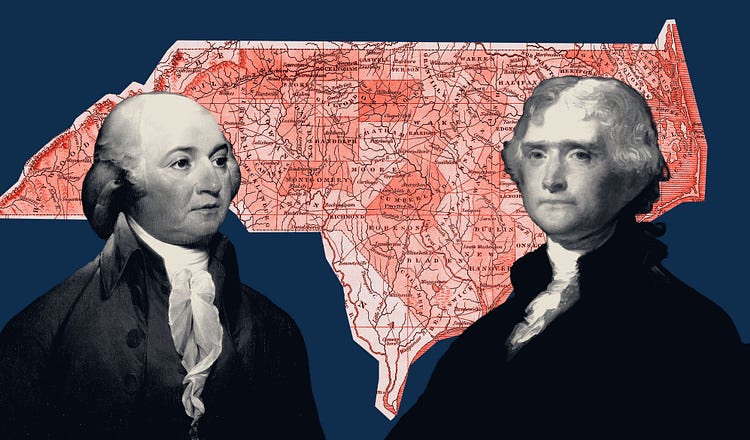 For anyone who has ever experienced the embarrassment of sharing a news story and finding out only afterward that it was too good to be true, here’s some solace: John Adams could relate. In June 1819, he forwarded to fellow ex-president Thomas Jefferson a newspaper article claiming that Mecklenburg County, North Carolina, had declared independence from Great Britain on May 20, 1775, in terms strikingly similar to the ones Jefferson would use the next year when drafting the Declaration of Independence. Bitter that Jefferson had gotten “all the glory” for a document that Adams denigrated as a “theatrical show,” the New Englander relished evidence that the Virginian had stolen some of his most vaunted phrases, including “our lives, our fortunes, and our sacred honor,” from the Carolina backwoods.