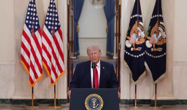 In his widely anticipated speech to the nation, President Donald Trump said we were winning, without declaring victory. He boasted that military objectives were met ahead of schedule, but offered no date to end the war. “Tonight, Iran’s navy is gone. Their air force is in ruins. Their leaders, most of them,” Trump said, “are now dead.” Nevertheless, the war must go on. “We’re going to bring them back to the Stone Age, where they belong,” he said. “In the meantime, discussions are ongoing.”