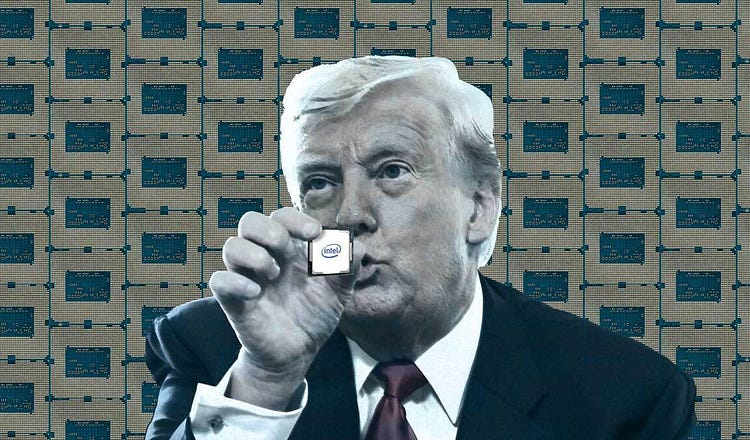 “Lip-Bu Tan might technically be the CEO of Intel. But if this policy comes to pass, Donald Trump will actually be running the show,” writes Tyler Cowen for The Free Press. (Illustration by The Free Press; image via Getty)